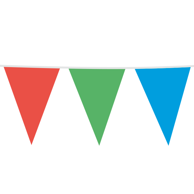 Vlaggenlijn XL in kleuren multicolour. De vlaggen zijn 30 x 45 cm en geven feestelijk gevoel in grote ruimte