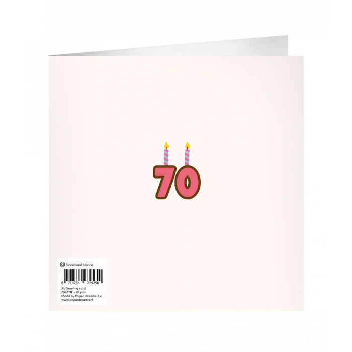 Vier een 70e verjaardag in stijl met onze XL wenskaart hoera 70 jaar. Deze grote wenskaart van 23x23 cm is een echte blikvanger en perfect om een speciale boodschap over te brengen.