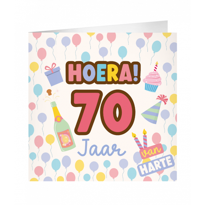 Maak de 70e verjaardag extra speciaal met deze unieke wenskaart. Bestel nu en verras de jarige met een persoonlijke boodschap die ze niet snel zullen vergeten. Bekijk alle resultaten in onze webshop en ontdek meer feestartikelen om het feest compleet te maken.